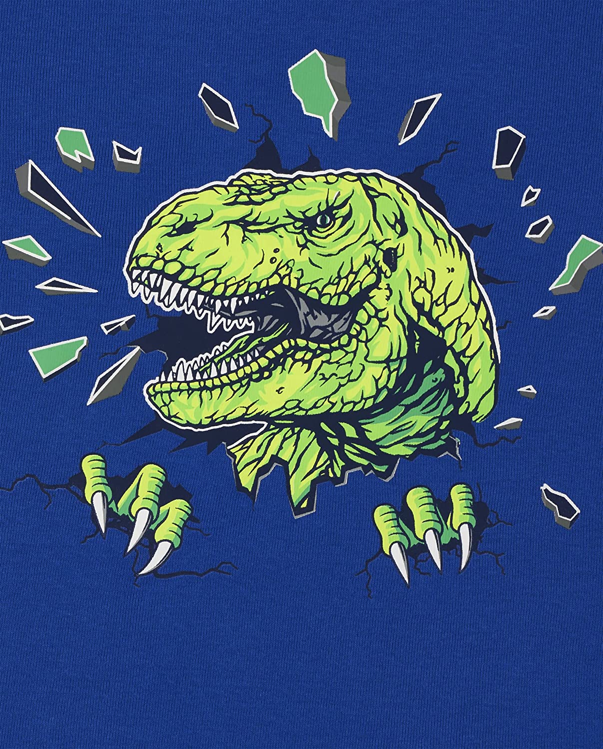 - PAJAMA TOP — Features contrast rib-knit crew neck, short sleeves and dino graphic design at front
