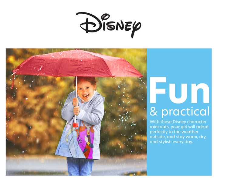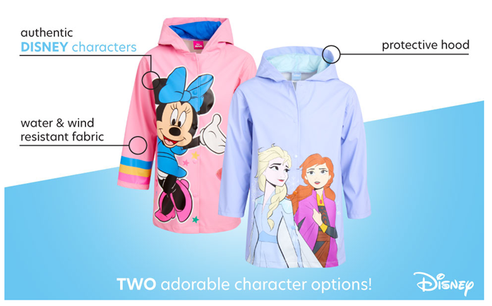 • OFFICIALLY LICENSED DISNEY: Girls' Disney raincoat with Minnie Mouse or Frozen prints; Quality merchandise with your beloved characters; Entertaining and inspiring people around the globe for decades