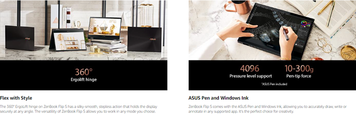The distinctive ZenBook Flip S combines elegant sophistication with an all-new design that makes it more desirable than ever. Its sleek 4K UHD OLED NanoEdge touch display and 360° ErgoLift hinge make ZenBook Flip S ultra-compact and ultra-versatile. The 11th Generation Intel® Core™ processor and Thunderbolt 4 connectivity deliver effortless performance for on-the-go productivity and creativity. The high-capacity battery in ZenBook Flip S provides up to 15 hours of battery life. ZenBook Flip S brings you flexibility and performance with a touch of luxury.
