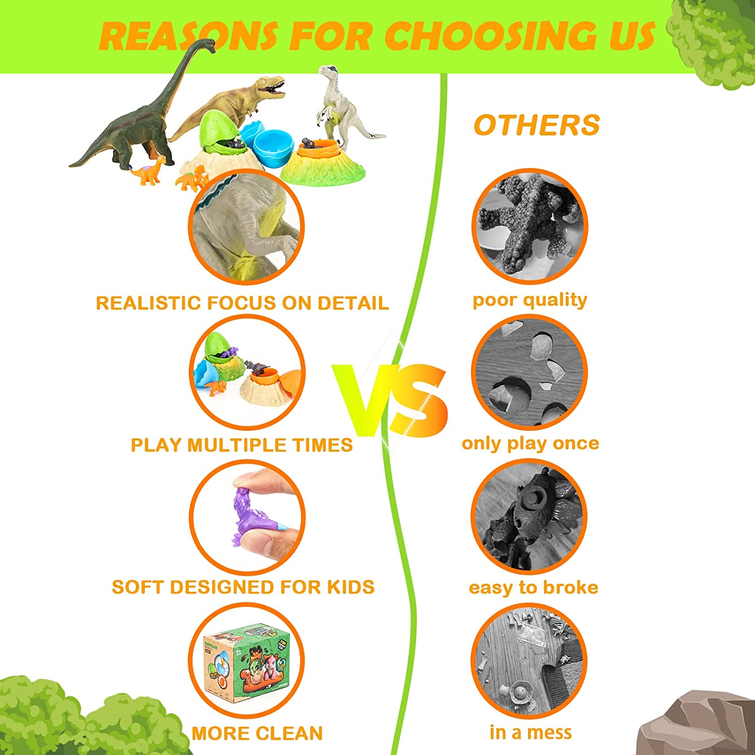 • 【Realistic Dinosaur Eggs Set】Each dino figurine is hand-painted and engraved by experts which looks more delicate. We add natural texture to the surface of dinosaur eggs and slots. The built-in design makes the dino eggs easily open and close. Realistic dinosaur eggs can attract children to immerse themselves in dino toys