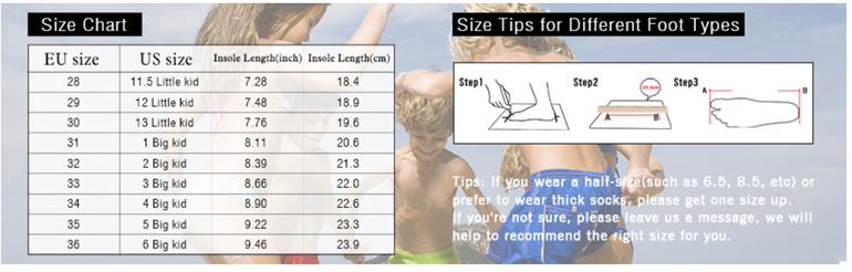 • FOOT SAFETY:Durable EVA material sole with rubber pods, add more secure traction and prevent slips and falls,and protect kids feet from sharp rocks and stones.