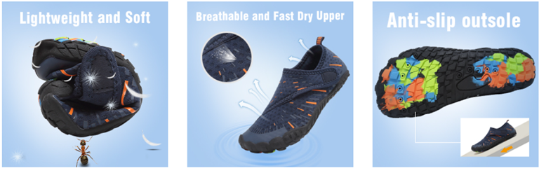 • BREATHABLE ULTRA LIGHT:Our Kids water shoes its upper with stretch breathable ultra light weight fabric for creates a cooler and healthier.
