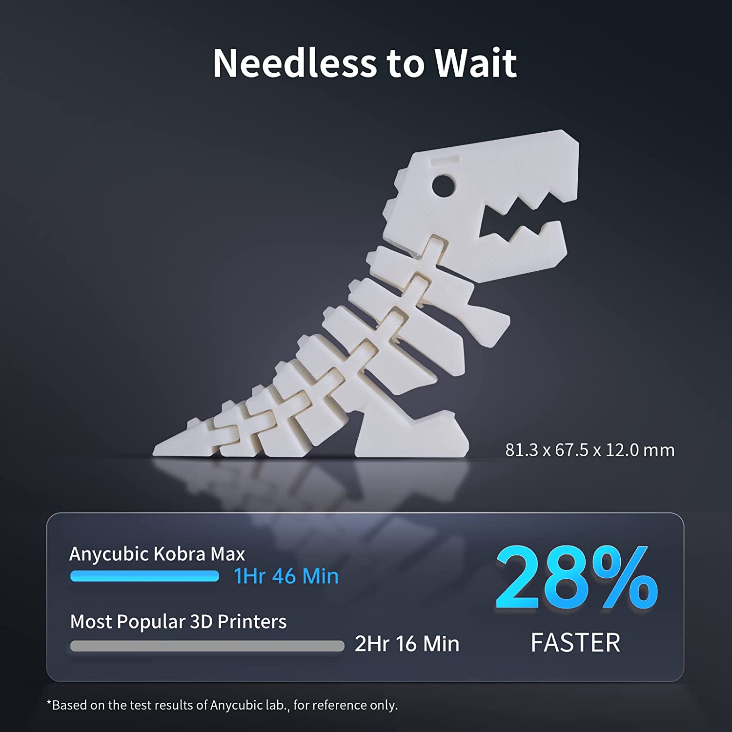 • Stronger Construction & Higher Precision: ANYCUBIC KOBRA MAX 3D Printer is equipped with double thread Z-axis moving construction. It can minimize the shaking, does not lose steps and more model details can be restored.