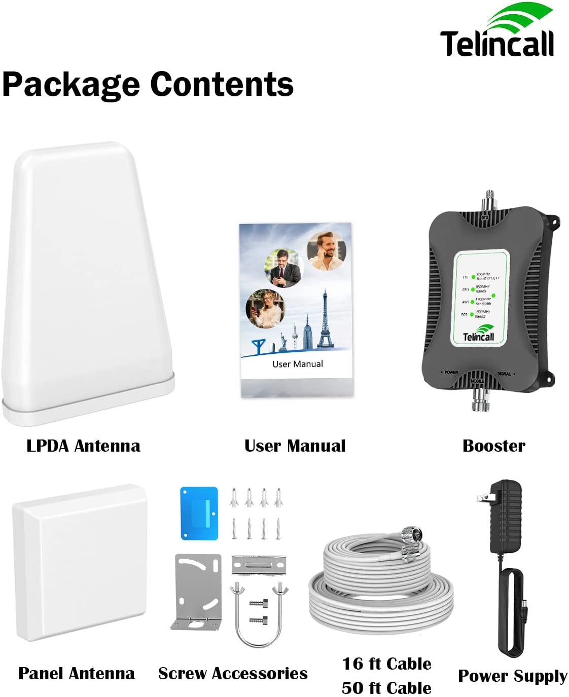 Cell Phone Booster Boosts 700/850/1700/1900/2100Mhz AWS 3G/4G/5G PCS LTE Cellular Signal Booster for All U.S. Carriers T Mobile AT&T US Cellular Verizon Cell Phone Signal Booster FCC Approved
