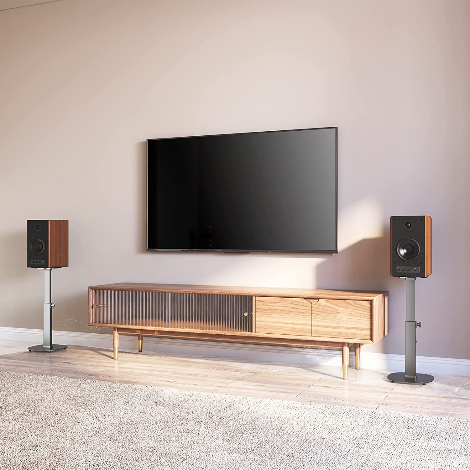 • Height Adjustment: The height of the speaker stand can be adjusted from 16.5 to 23 inch with the knob. Put your speakers at an ideal listening height for a better audio-visual environment.