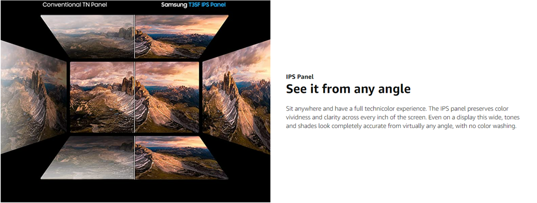 - IPS PANEL: Sit anywhere and have a full technicolor experience. The IPS panel preserves color vividness and clarity across every inch of the screen. Even on a display this wide, tones and shades look completely accurate from virtually any angle, with no color washing