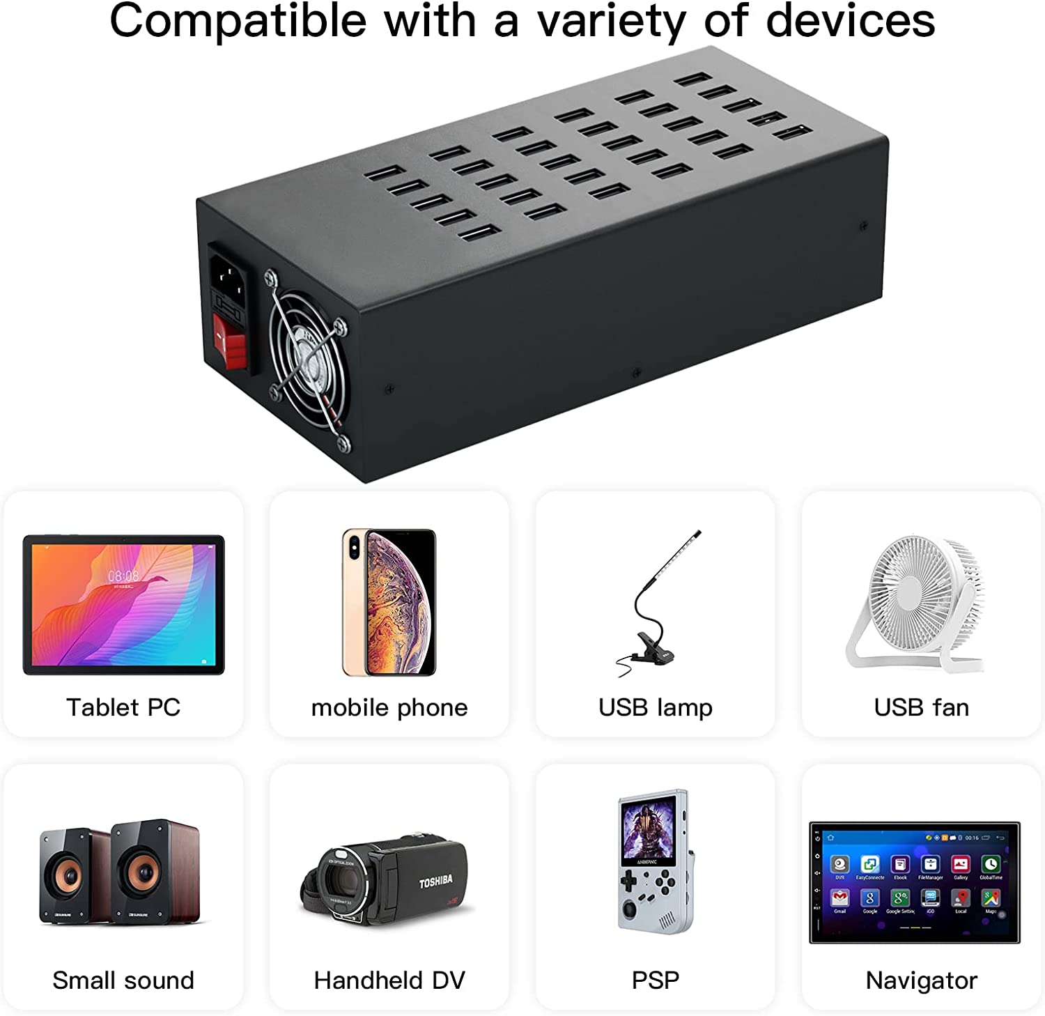 Charging Station for Multiple Devices, 30 Port 300W USB Charging Station, 30-in-1 USB Charging Hub, Multiple USB Charging Station for iPhone, iPad, Samsung, Tablets, and Other Electronics