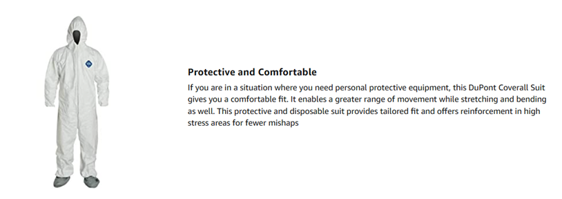 For situations that call for disposable PPE (personal protective Equipment) This disposable protective suit from DuPont is our most popular garment for professionals and home improvement users. It is a versatile garment for a range of jobs including paint spraying, mold treatment, lead and asbestos abatement/remediation, general maintenance/operations, and general cleanup work. These protective suits are able to breathe so they don't get too hot, but they stop hazardous particles down to 1 micron in size. The DuPont Tyvek Coverall is an industry leading suit Featuring the best tear and puncture resistance.