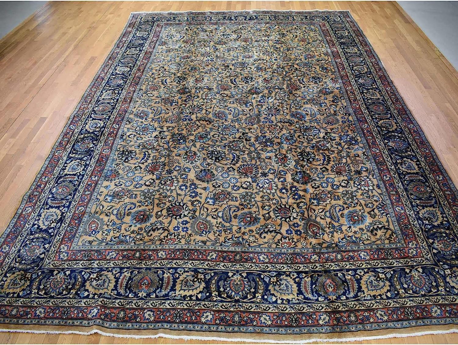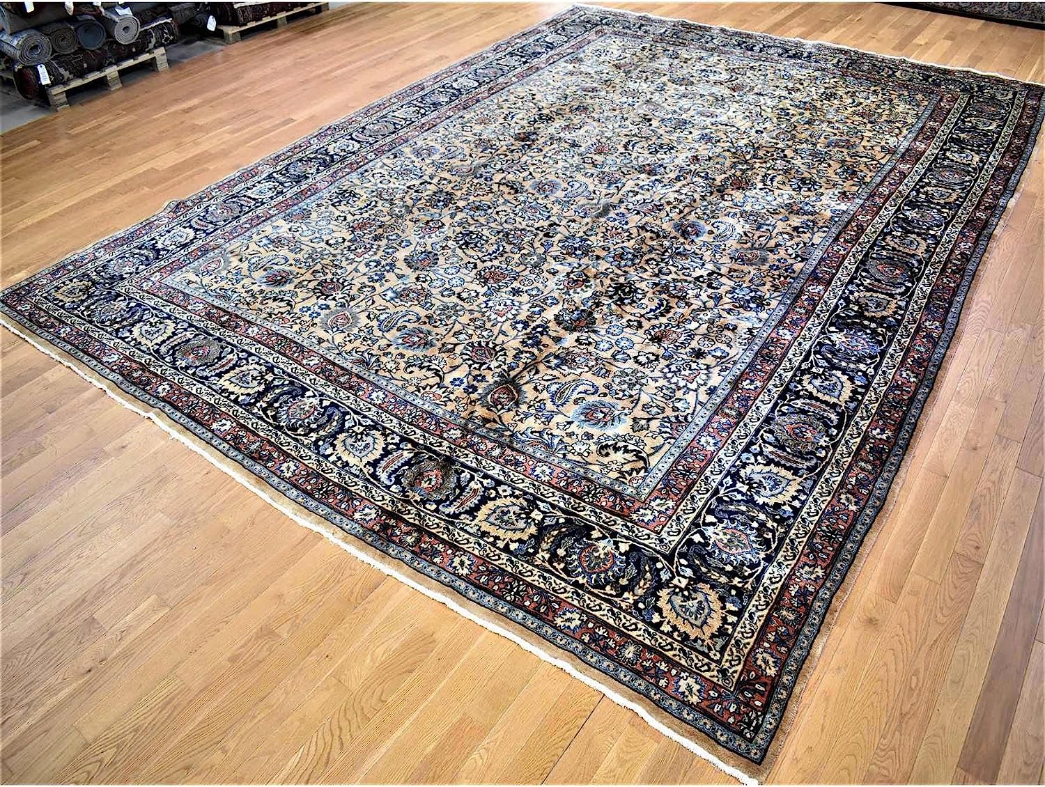 Shahbanu Rugs Ivory, Antique Farsian Mashad, Hand Knotted, 100% Wool, Oversized Rug (11'9" x 16'4")
