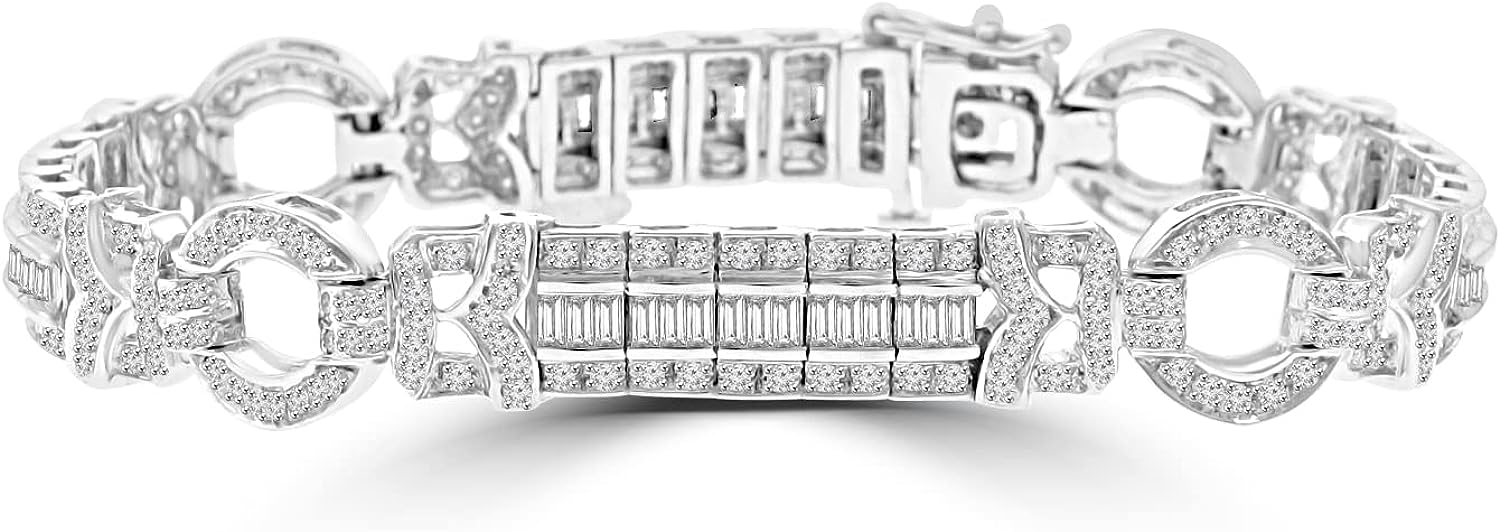 Madina Jewelry 7.27 ct Ladies Baguette and Round Cut Diamond Tennis Bracelet In Channel and Pave Setting
