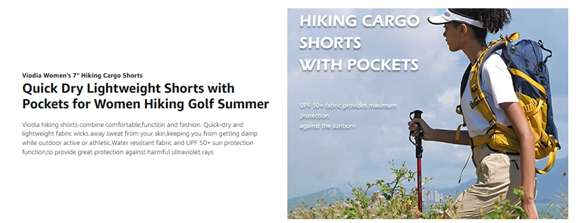 Viodia Women's 7" Hiking Cargo Shorts with Pockets Quick Dry Lightweight Shorts for Women Golf Casual Summer Shorts