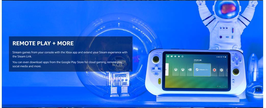 • Remote Play: Use this handheld gaming device to remotely play your games with the Xbox Remote Play app and Steam Link apps