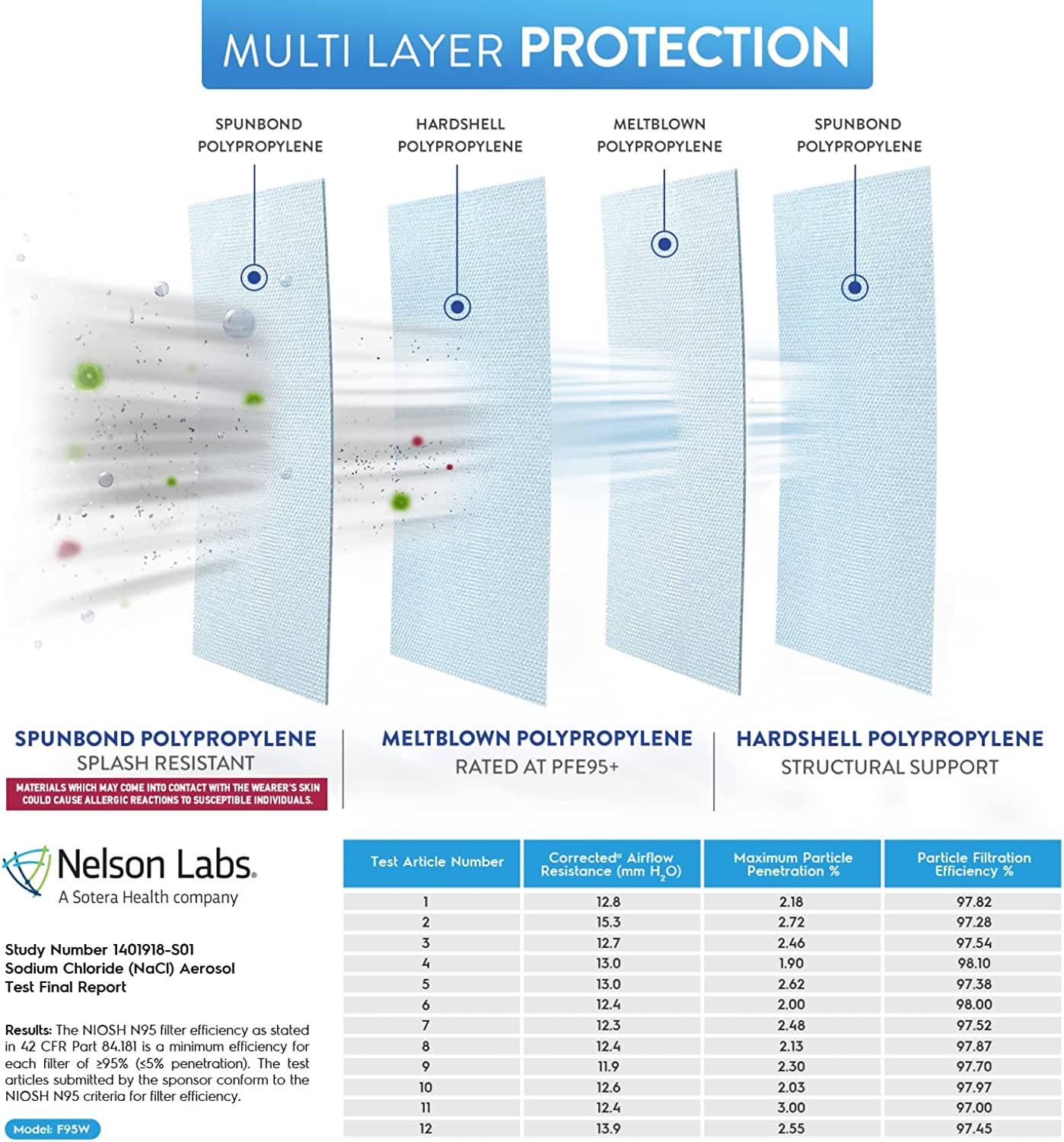 • Superior Protection & Breathability - BNX’s multi-layer filtration technology provides maximum protection, comfort and breathability. The active filter layer of these N95 masks is composed of ultra-high grade electrostatically charged meltblown polypropylene. Extremely breathable up to 50%+ more breathable than NIOSH minimum requirement.