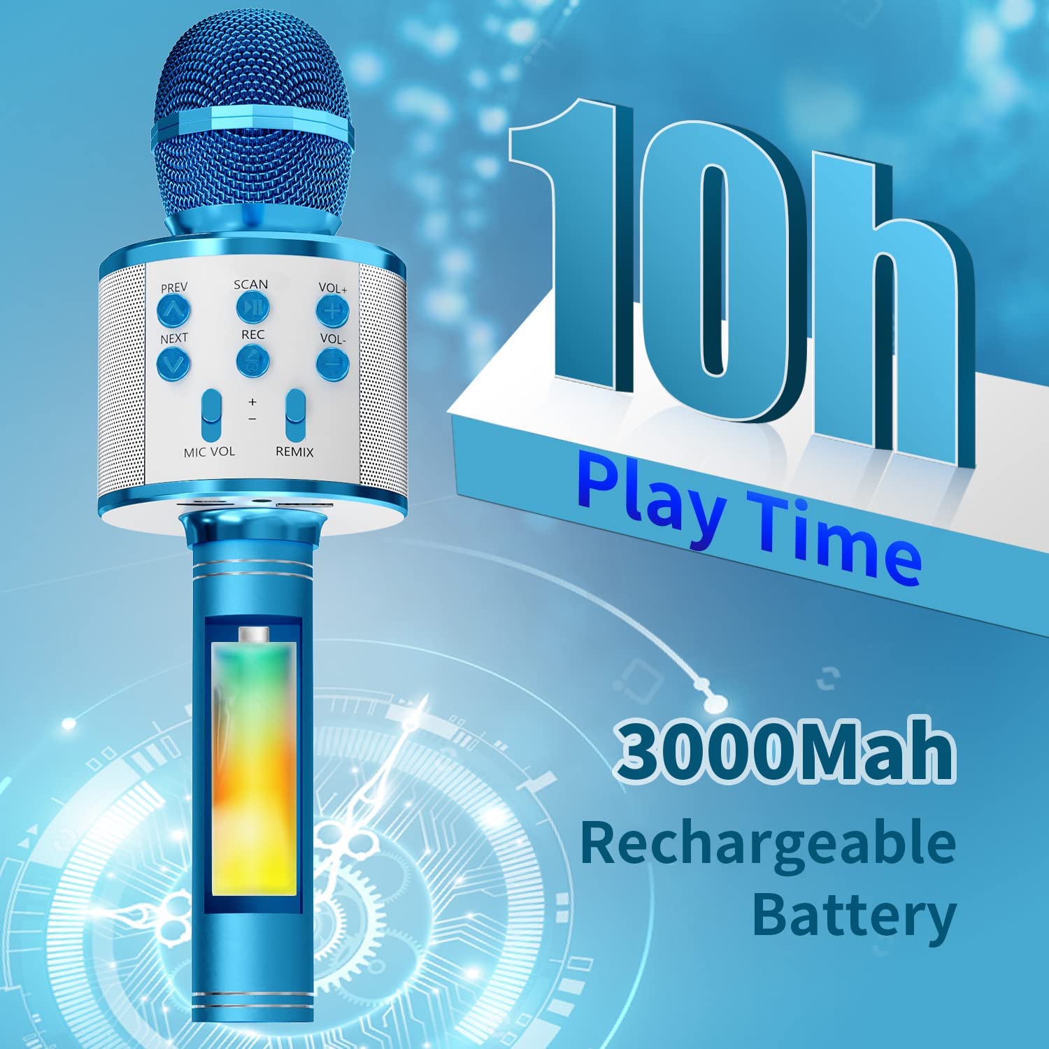 • 【Long Playback Time】Built-in 3000mAh rechargeable battery, this Bluetooth karaoke wireless microphone can last 10 hours of continuous use in a full charger.