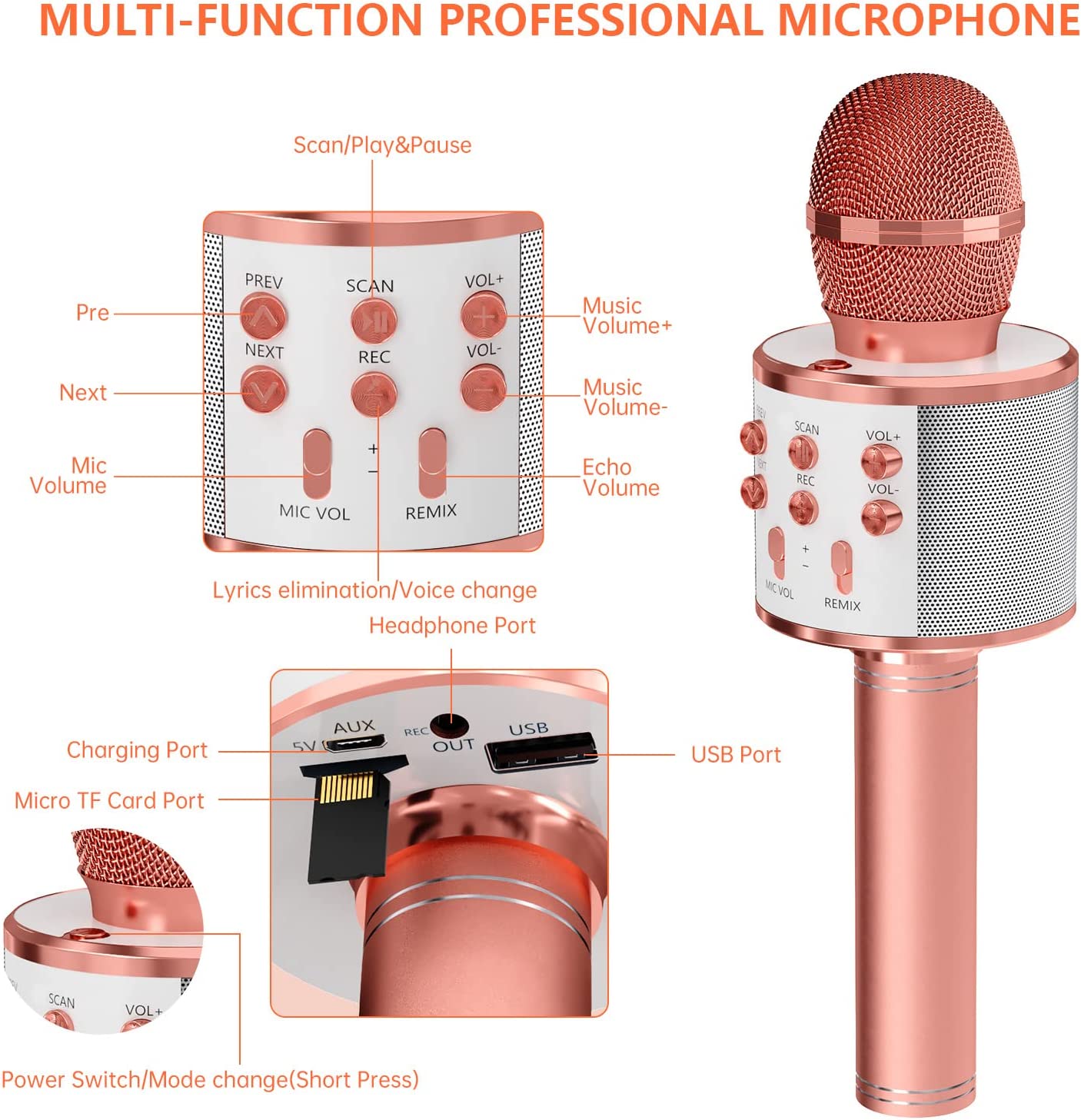 GIFTMIC Kids Microphone for Singing, Wireless Bluetooth Karaoke Microphone for Adults, Portable Handheld Karaoke Machine, Toys for Boys and Girls Gift for Birthday Party (Rose Gold)