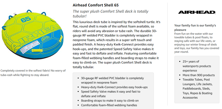 Included Components‎AIRHEAD COMFORT SHELL DECK 65 Towable Tube