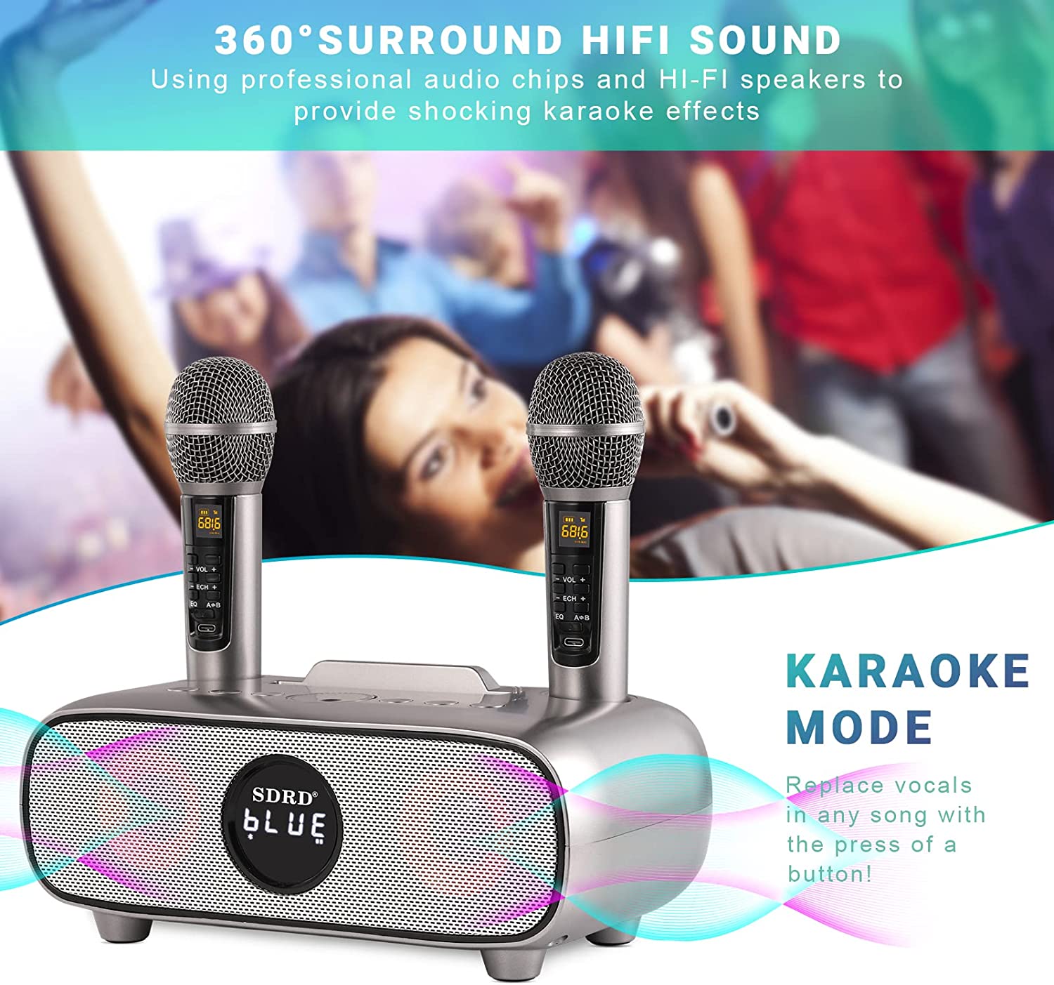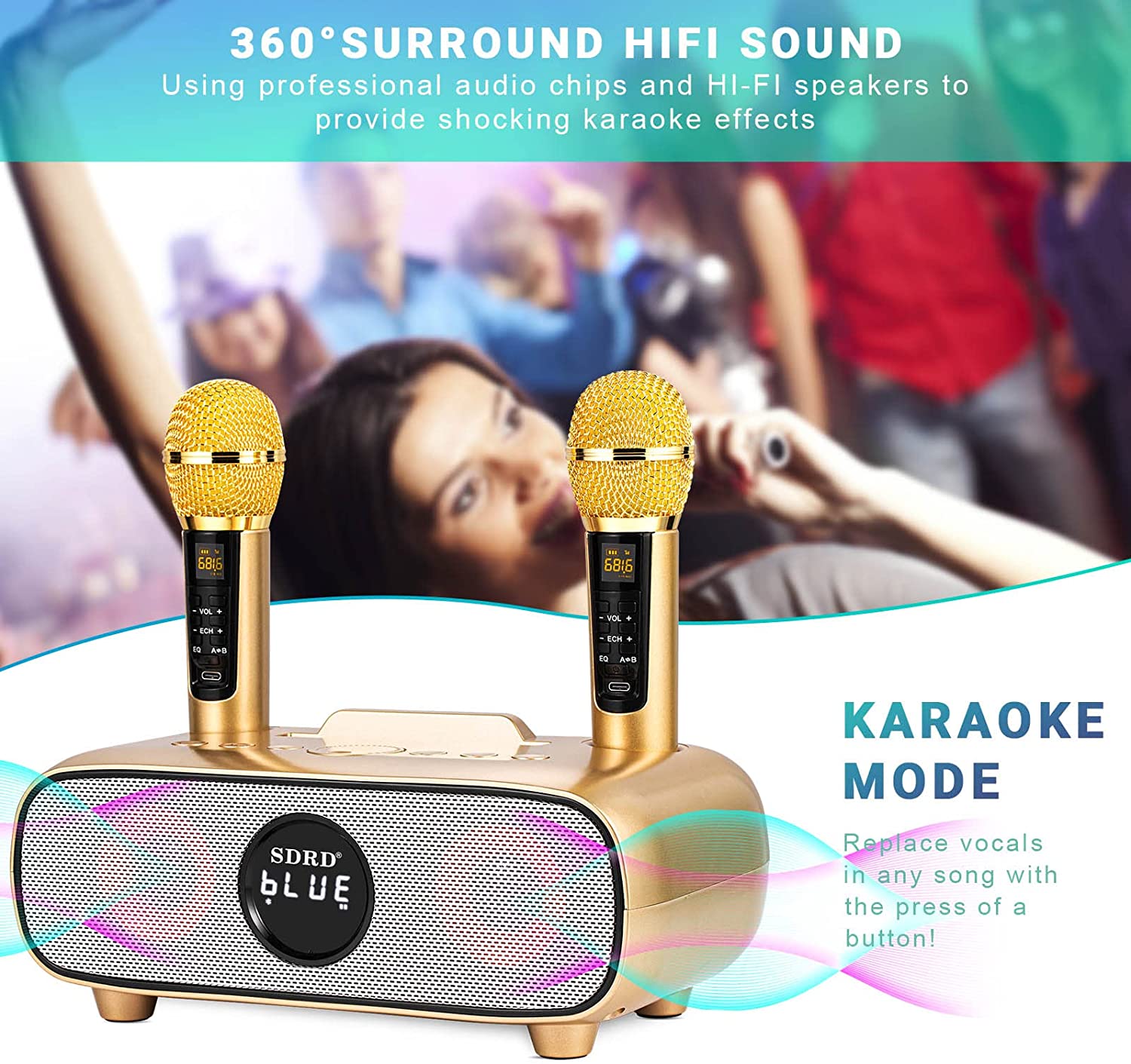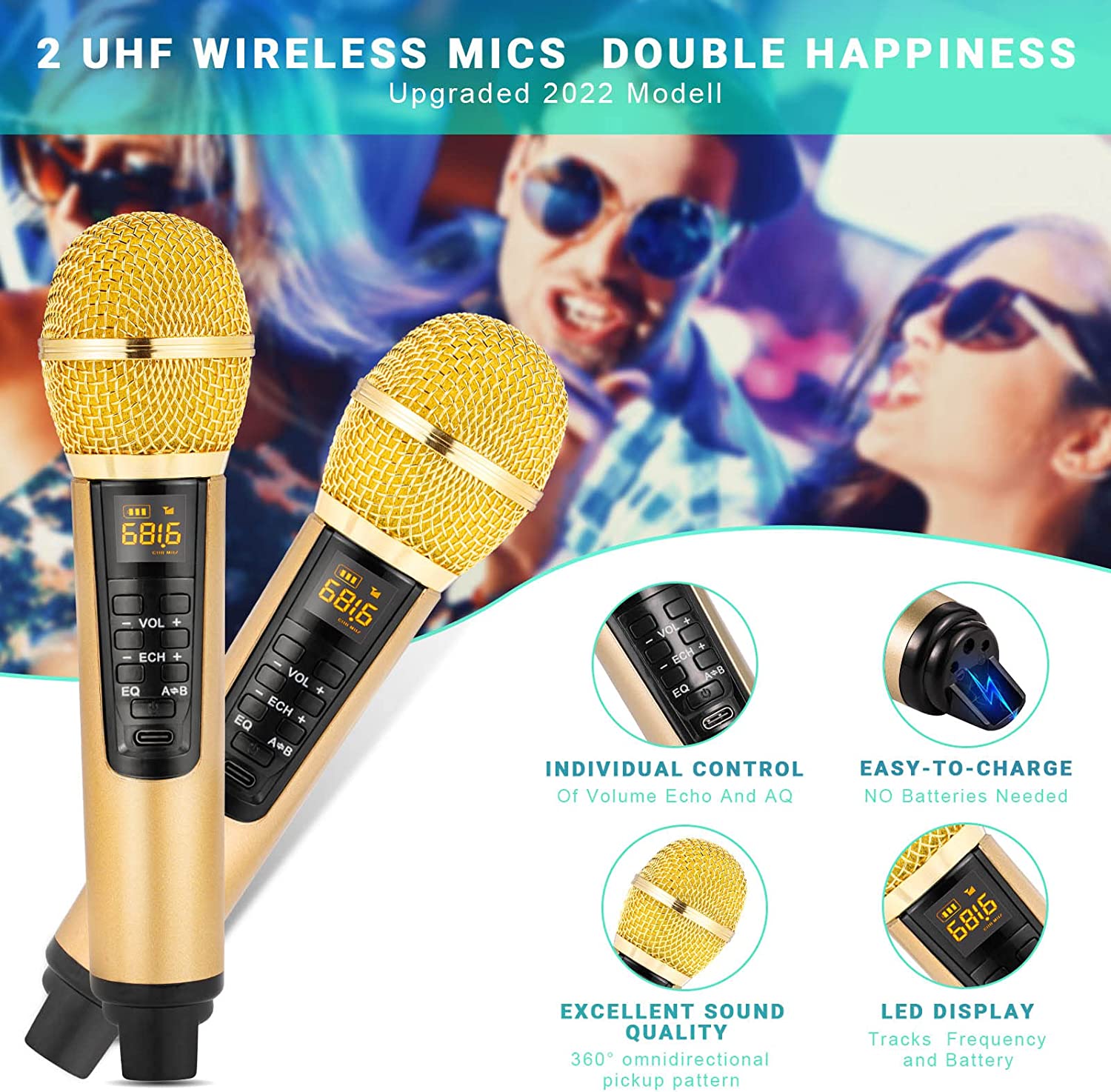 Karaoke Machine for Adults and Kids,Portable Bluetooth 2 Wireless Karaoke Microphone with Holder/USB/TF Card/AUX-in, PA Speaker System for Home Party, Picnic,Car,Outdoor/Indoor