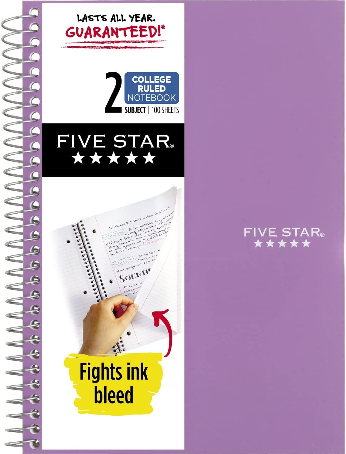 Five Star Small Spiral Notebook, 2-Subject, College Ruled Paper, 9-1/2" x 6", 100 Sheets, Amethyst Purple (840004CF1)