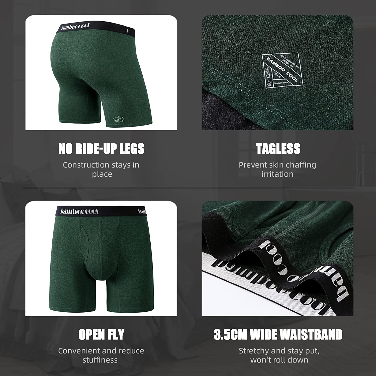 BAMBOO COOL Men’s Underwear Boxer Briefs Soft Comfortable Bamboo Viscose Underwear Trunks (4 Pack)