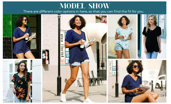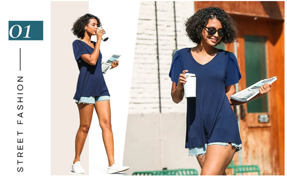 ❤ 【 Features 】 casual tunic top, v neck tops tee, petal short sleeve tshirts, stretch loose blouse, solid color and print, on the hip length, sexy, plain, trendy and elegant.
