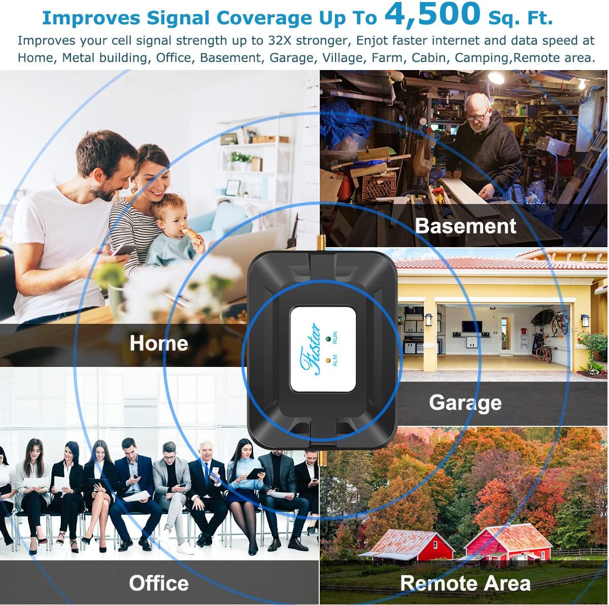 FUSTAR Cell Phone Signal Boosters for Home 4G 5G AT&T, T Mobile, U.S Cellular, Cricket, Straight Talk Band 12/17 BLACK