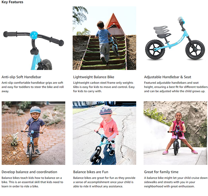• ❤GROWS WITH YOUR CHILD - The balance bikes come with quick release seat clamp for tool-free adjustment. The seat and handlebar heights adjust to accommodate ages 18 months to 5 years, or a 12.6- 18.5 in. inseam. A geat first balance bike transition to pedal bike for kids.