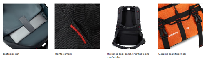- *Waterproof and durable: including waterproof materials. The Camping Backpack is made of super thick, tear resistant, waterproof and wear-resistant polyester fiber. All stress points are reinforced with joint reinforcement to prolong their service life