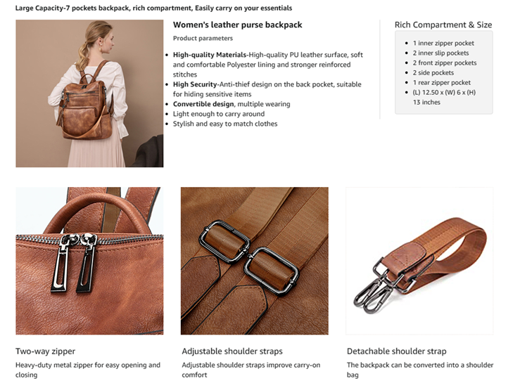 Item model numberLeather Backpack Purse for Women
