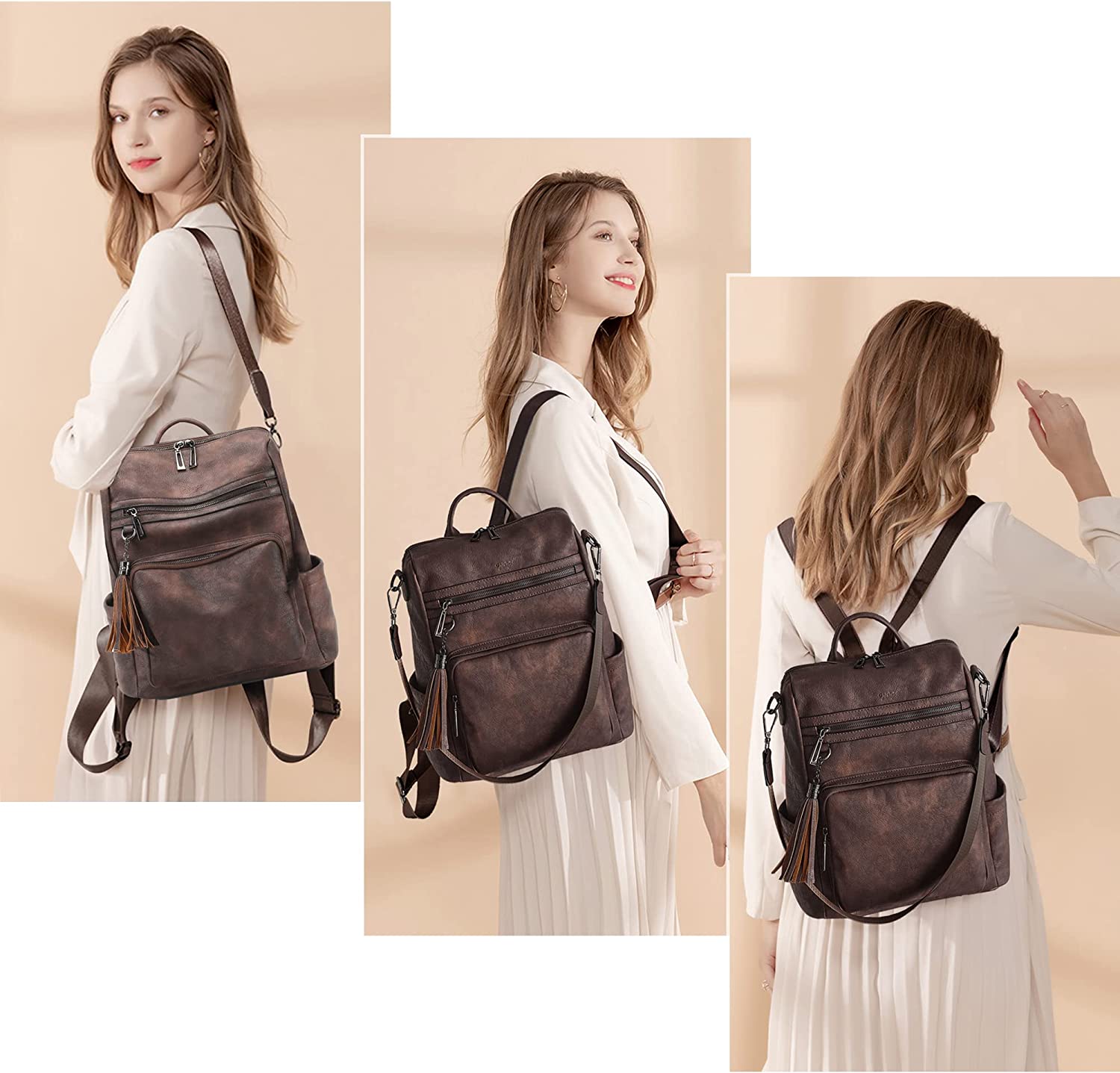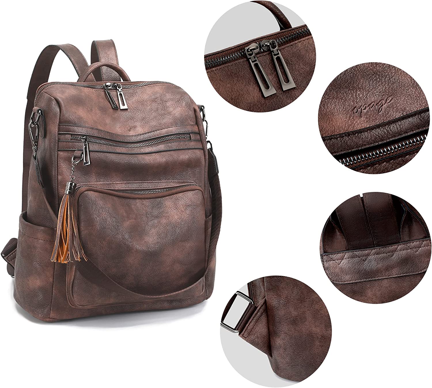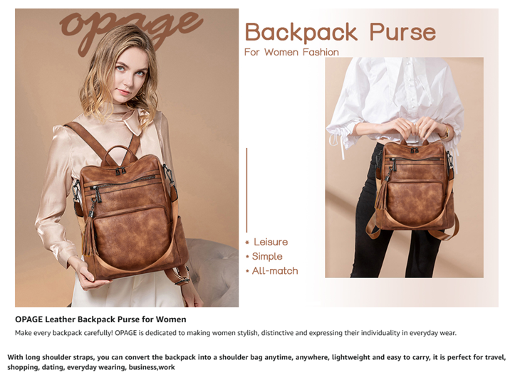 • 【High-quality Material】This opage leather backpack purse for women is made of premium waterproof and tear-resistant soft leather, and is designed with double metal zippers, there is a cute tassel next to the front zipper pocket. All of these are fashionable and durable.