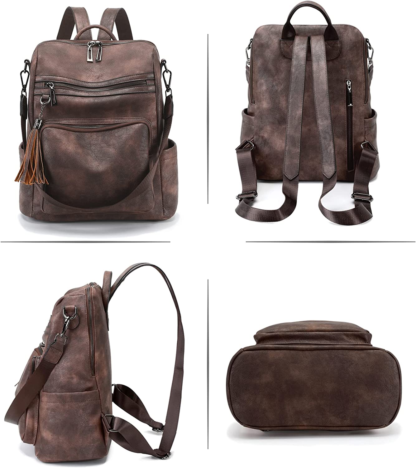 • 【Construction & Large Capacity】This backpack purse for women adopts 1 inner zipper pocket, 2 inner slip pockets, 2 front zipper pockets, 2 side pockets and 1 rear zipper pocket, deep pockets and back anti-theft design increase the security of personal items. Multiple pockets can keep your things well organized.