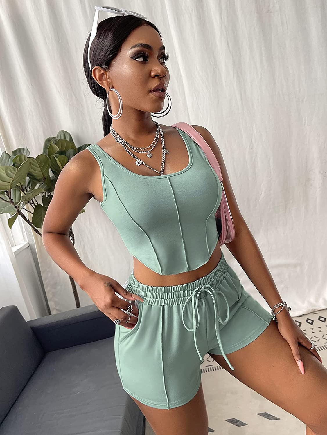 SOLY HUX Women's Crop Tank Top and Drawstring Waist Track Shorts Set 2 Piece Outfits