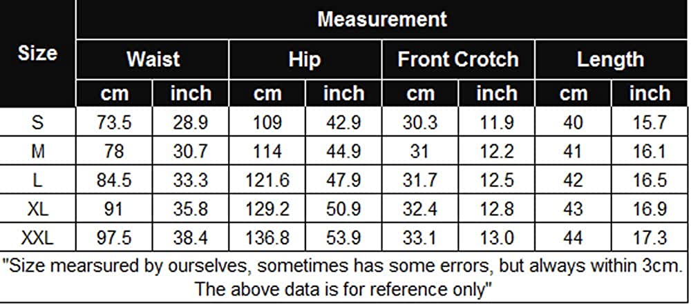 Size Chart For Men's Running Shorts