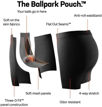BALLPARK SUPPORT: Our boxer briefs come equipped with the patented BallPark Pouch to reduce friction and keep your man-parts in place with breathable mesh panels for chafe-free comfort.