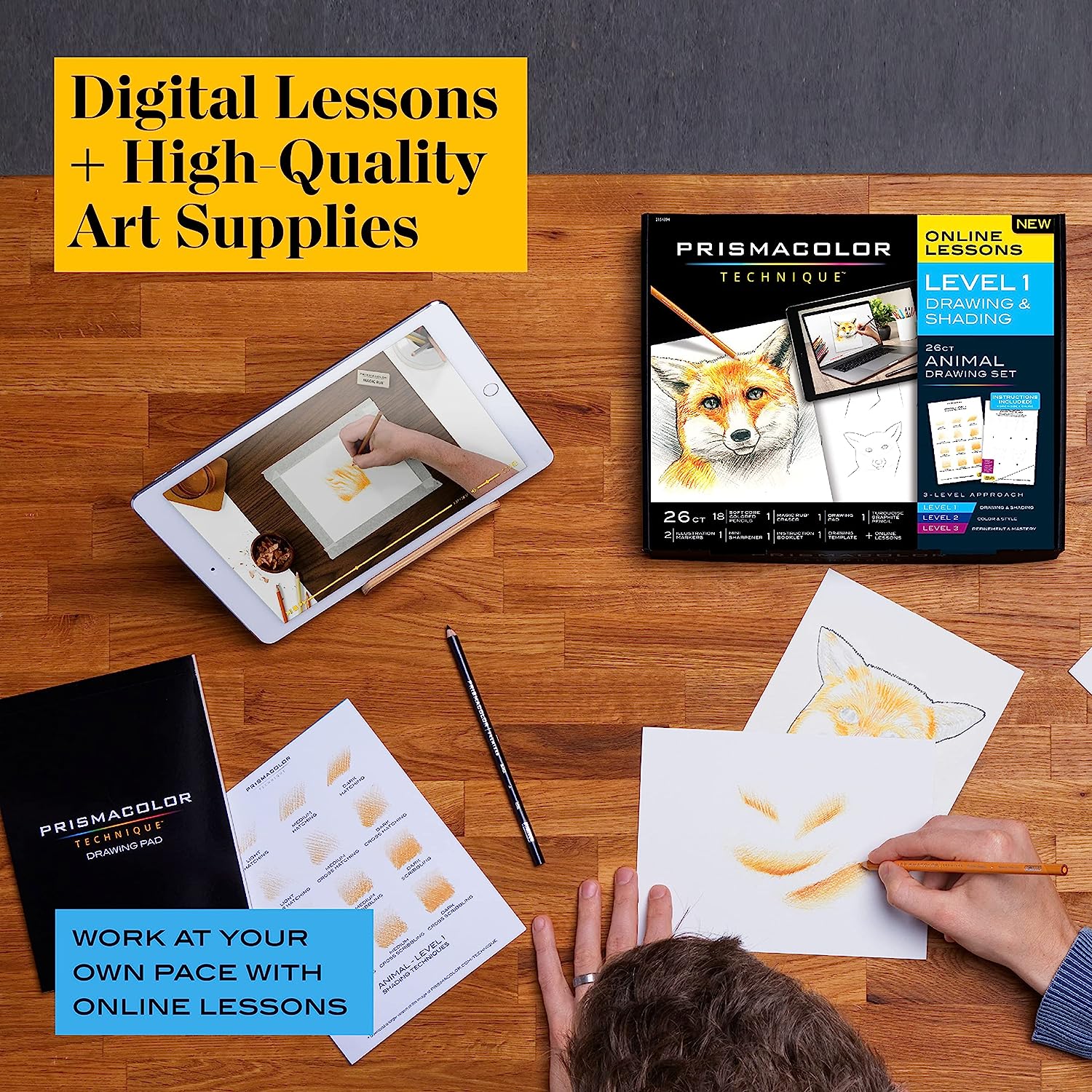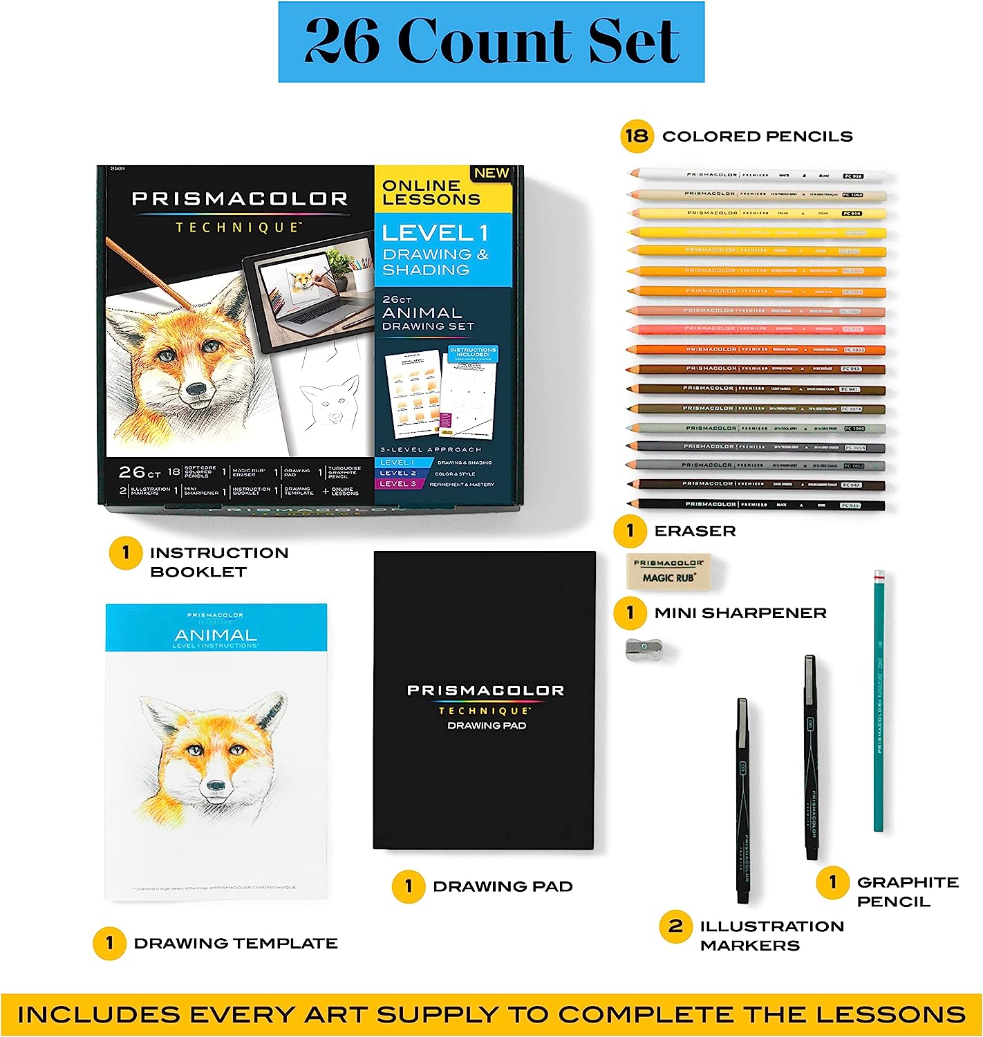 Prismacolor Technique, Art Supplies with Digital Art Lessons, Drawings Set, Level 1, How to Draw Animals with Colored Graphite Pencils, and More, Fox Drawing Lesson, 26 Count