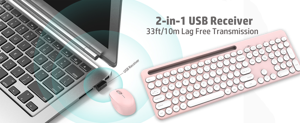- 【Easy 2.4G Wireless Setting up】: Plug and play, simply connect both your portable keyboard and mouse with one USB receiver without any software and then enjoy a strong and reliable wireless connection up to 10 meters(33 ft) away with virtually no delays or dropouts.