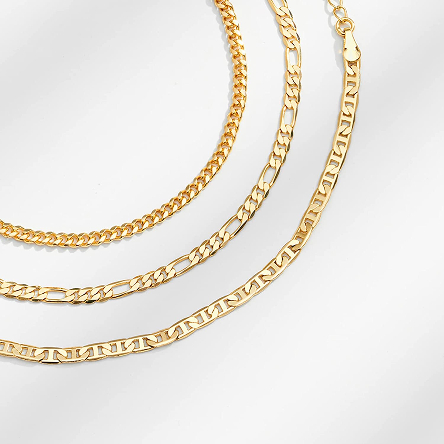 - [Ankle Bracelets for women]: The gold anklets set includes 3pcs, Thin gold cuban link anklet & gold figaro anklet & stud anklet. You can wear it alone or stack.