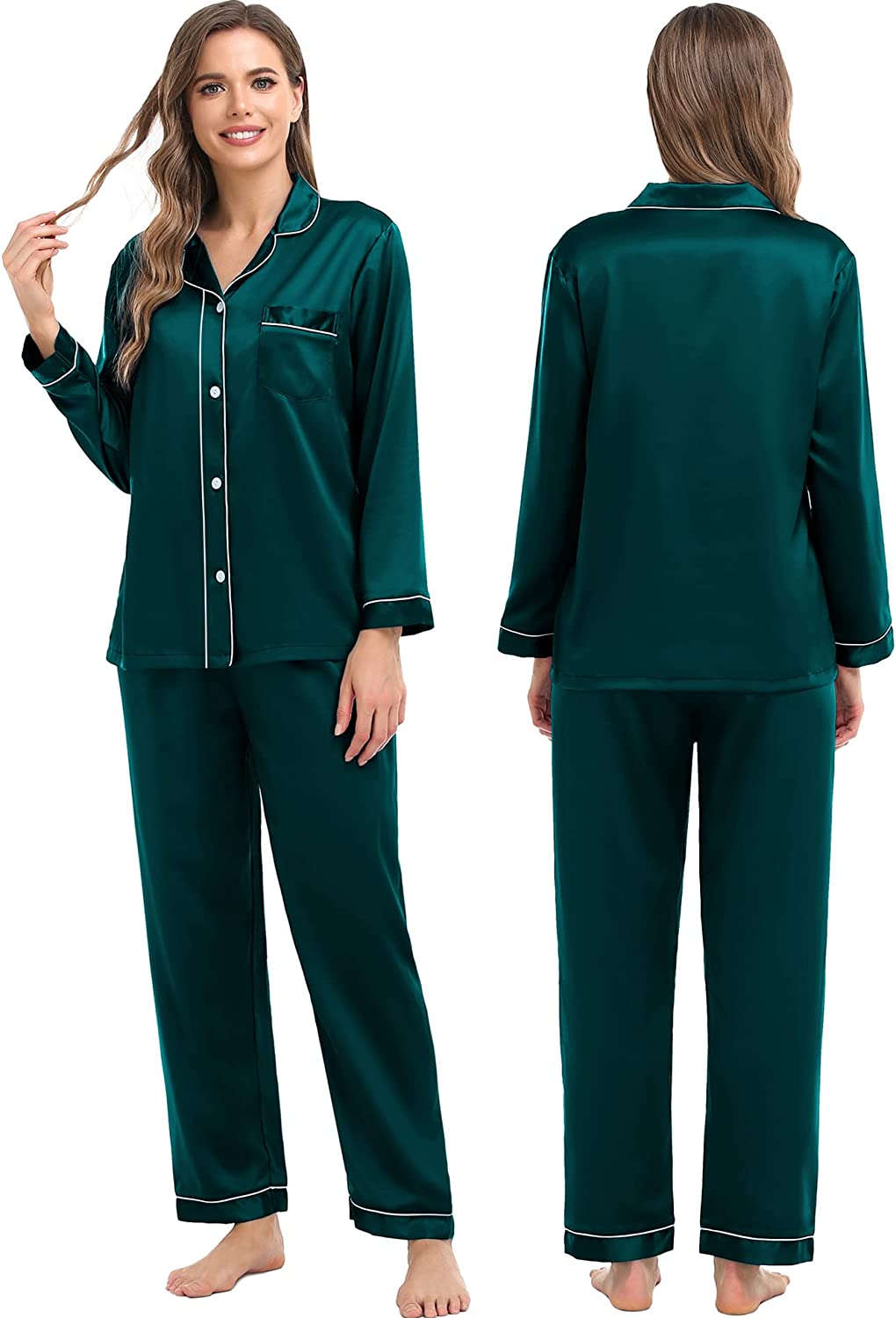 • 【The Whole Family】- The family satin pjs set are available in sizes for women, men, girls, boys and kids. Make this super-soft sleepwear part of your family’s party traditions. The whole family silk sleepwear features a notch collar, long sleeves, button-up shirt with front chest pockets, and pajama pants with an elastic waistband, which is sure to give you and your loved ones that warm and funny feeling.