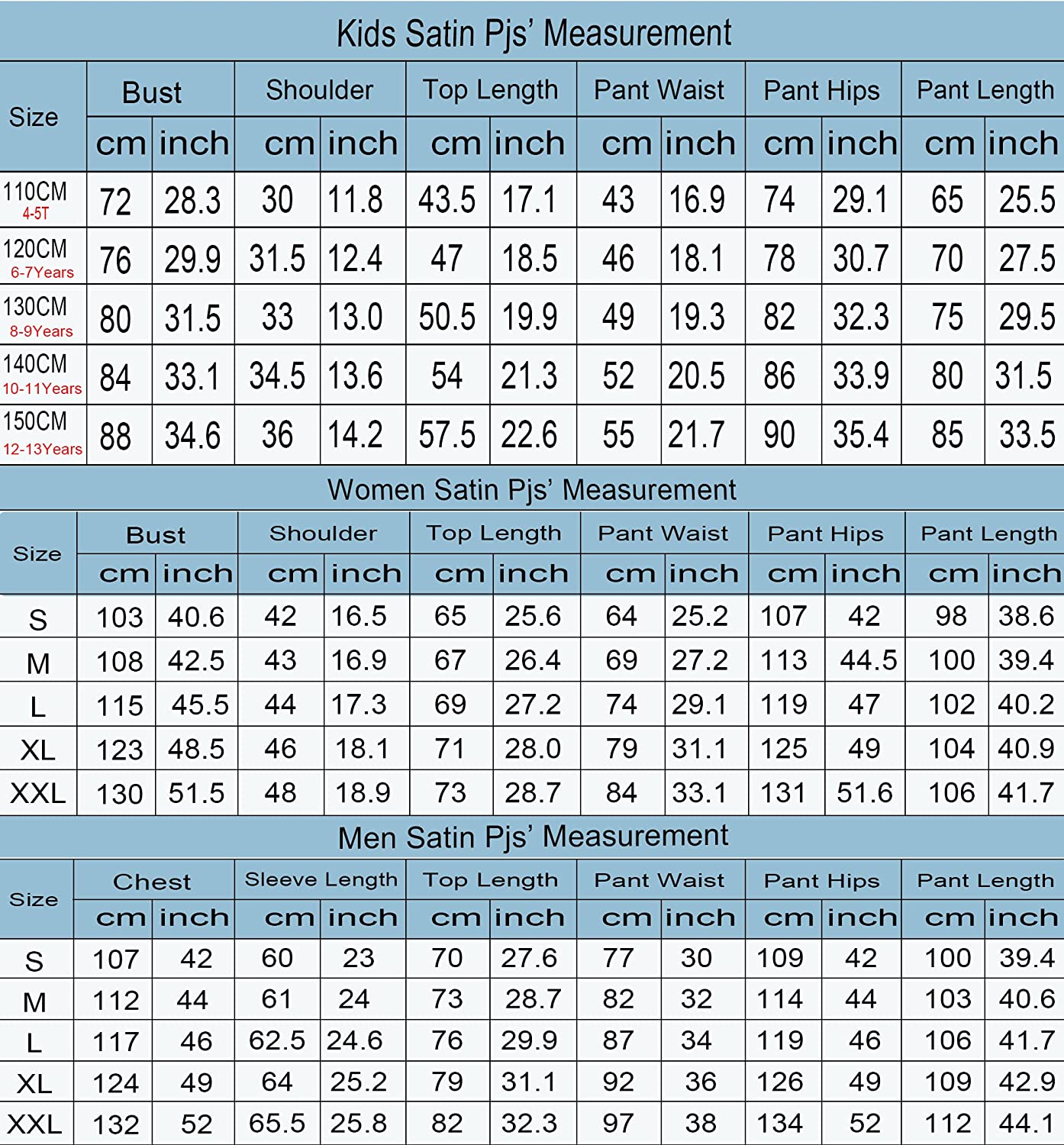• 【Premium Material】- These cozy family pajamas are made of high-quality satin(95% Polyester, 5% Spandex), which is extra-soft and comfortably comfy. These matching silk satin pajamas make cozy lounging a shared experience. Bring them out during family game night, get matching sets as a couple to make your time together extra fun. Tips: Each set of these family pajama set is sold separately.You can purchase the men's or women's or kids pajamas individually.