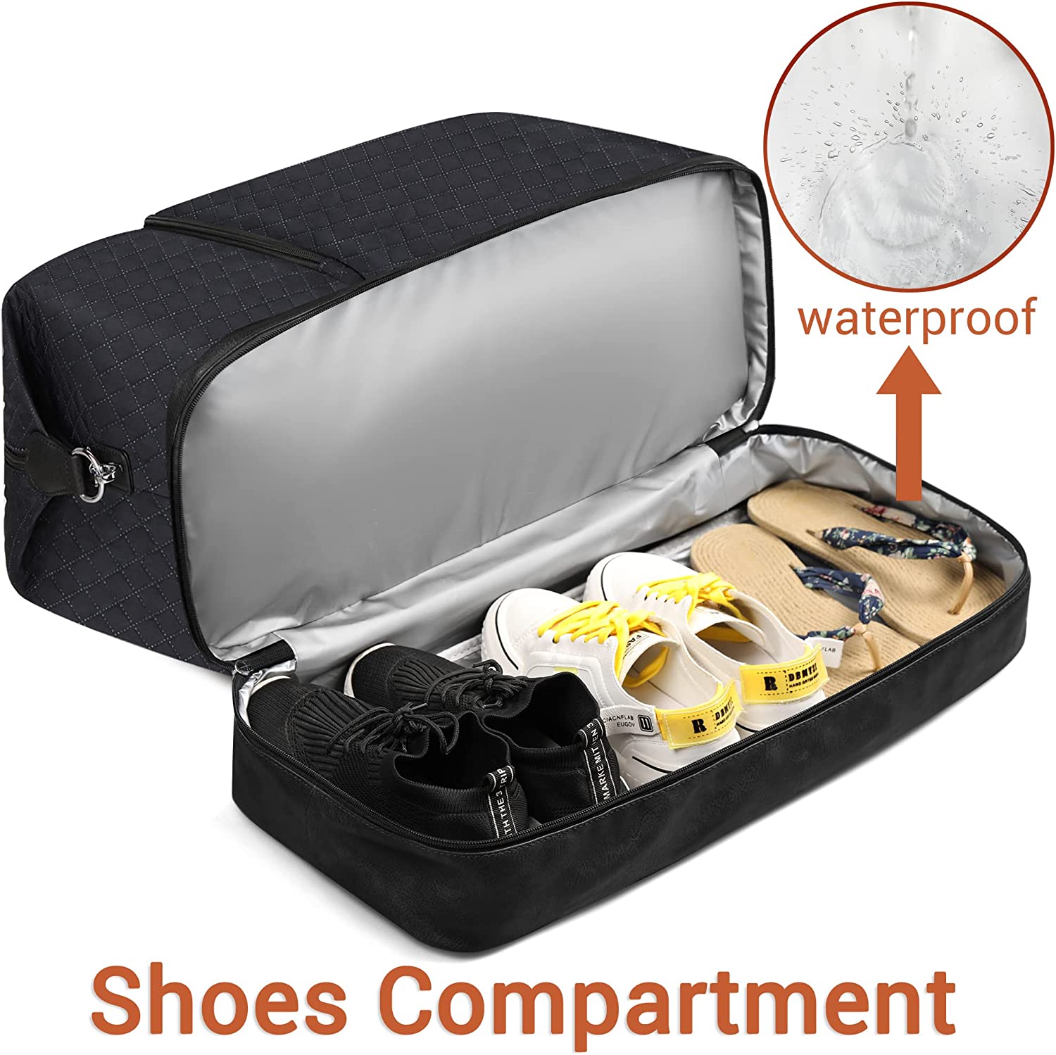 • Waterproof Separate Shoes Compartment: This travel bag is designed with a dedicated waterproof shoe compartment to facilitate carrying your shoes during travel. This compartment can also be used to hold dirty clothes or wet towels, separate wet and dry to prevent your clean luggage from getting soiled or wet.