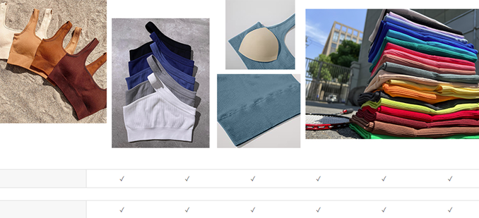 • 90% Nylon+10% Spandex. Ribbed Scoop Neck Sports Bra(padded bra)+One Shoulder Sports Tops(no padded bra)+Ribbed Shorts