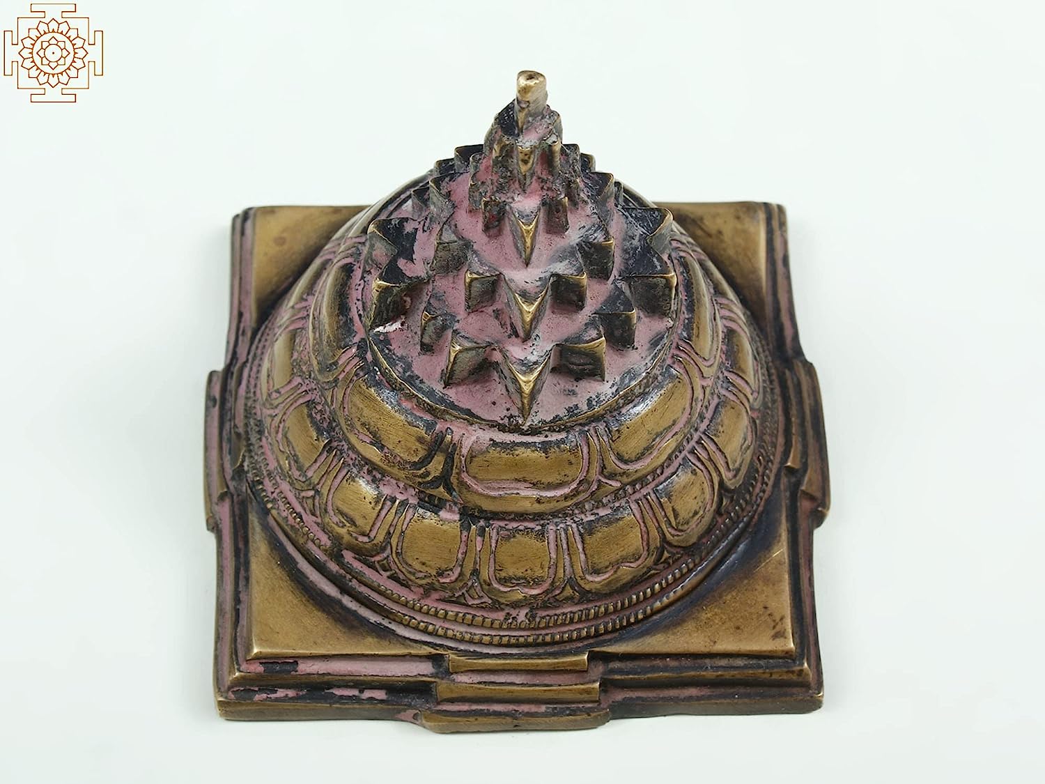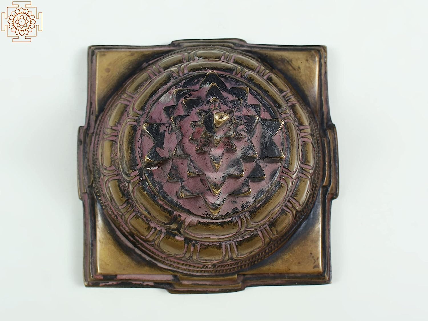 3" Shri Yantra with Beads Japa Mala in Brass | Handmade | Made in India - Brass - Color Antique Natutalbrass