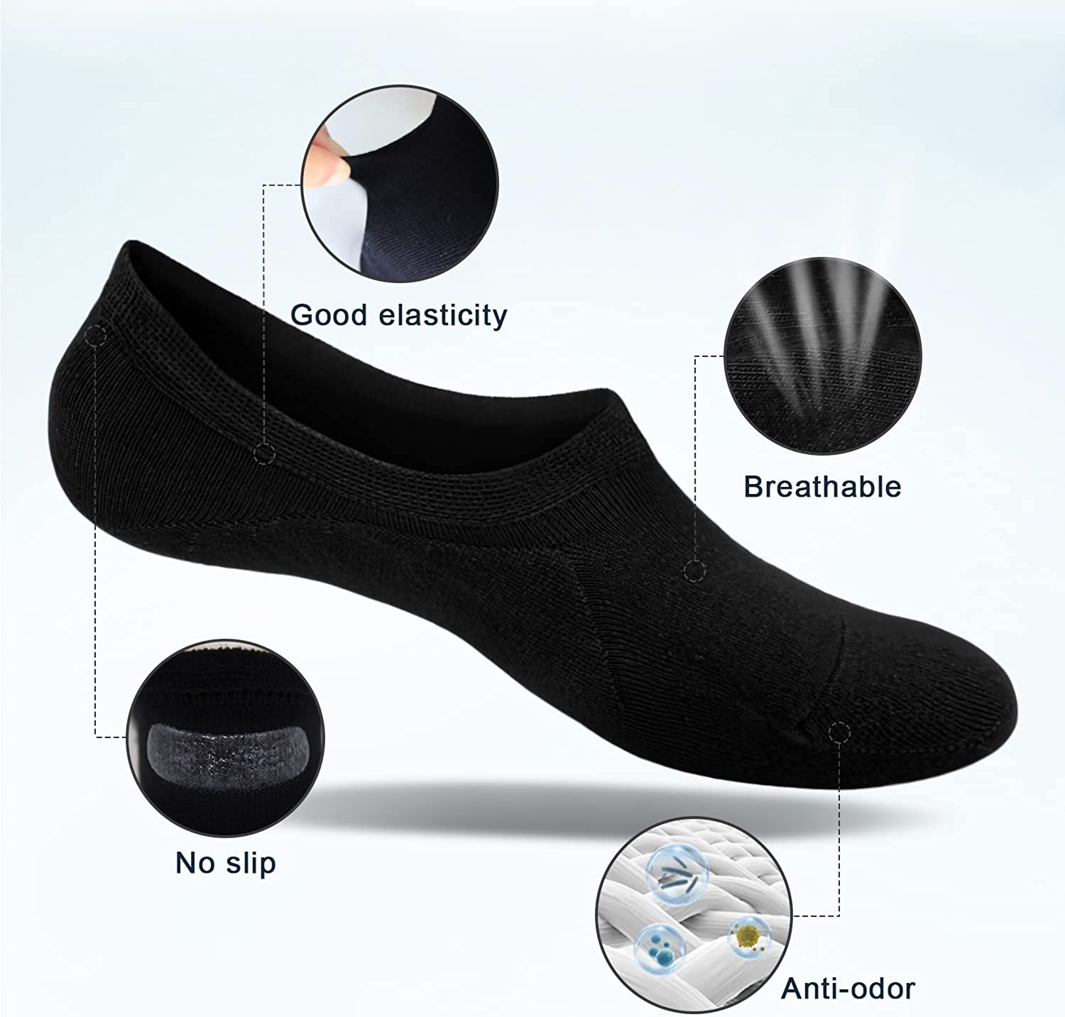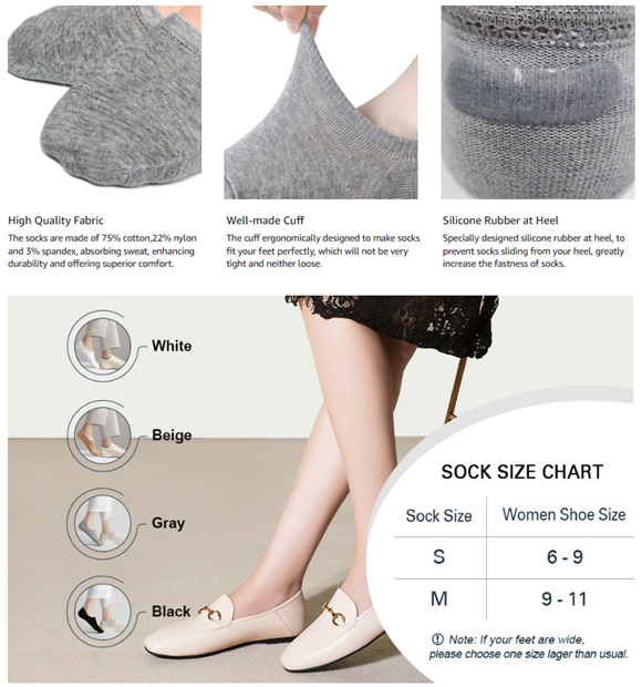 • 【Odor】With the Anti-Odor treated ,the invisible socks helps cut down odor,suitable for various occasions: home,office,gym,outside,etc.
