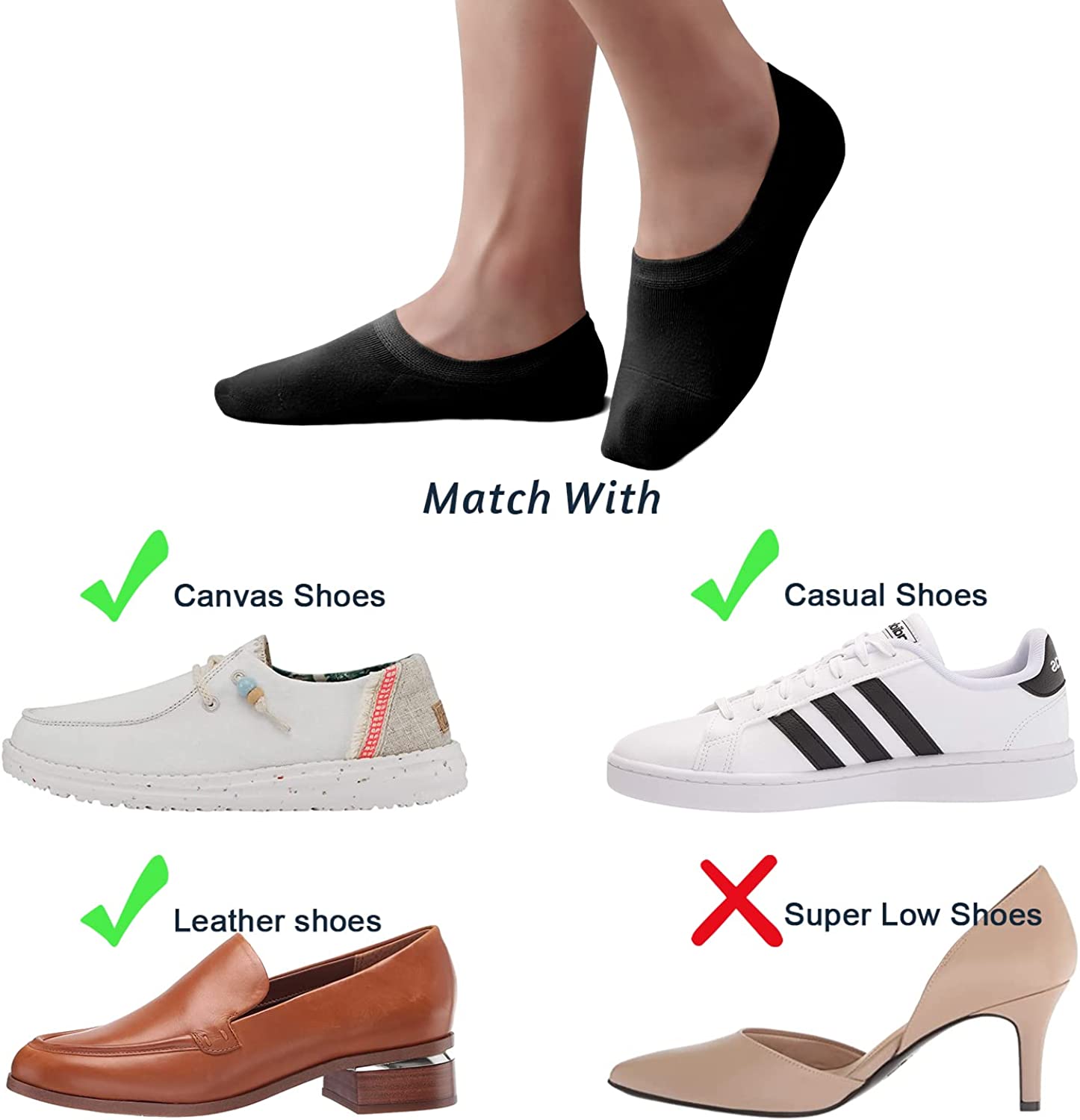 • 【No Show】No show and low cut invisible design goes well with most shoes such as sneakers,loafers and casual shoes. (NOTE: This sock is not suitable for a super low flat shoe) The short no see socks are available in four basic colors: black, white, nude and light gray, and 6-9/9-11 2 size ranges providing you more choices.