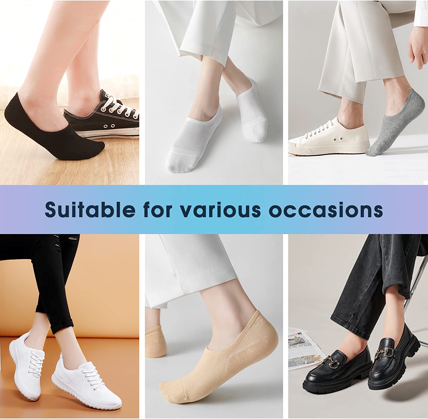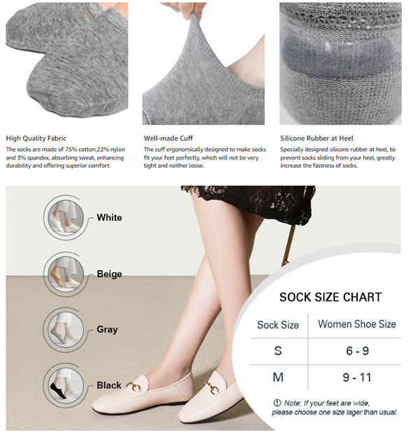 • 【No Show】No show and low cut invisible design goes well with most shoes such as sneakers,loafers and casual shoes. (NOTE: This sock is not suitable for a super low flat shoe) The short no see socks are available in four basic colors: black, white, nude and light gray, and 6-9/9-11 2 size ranges providing you more choices.