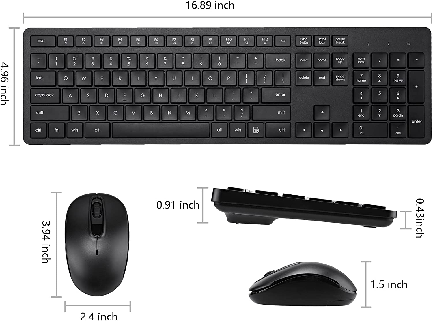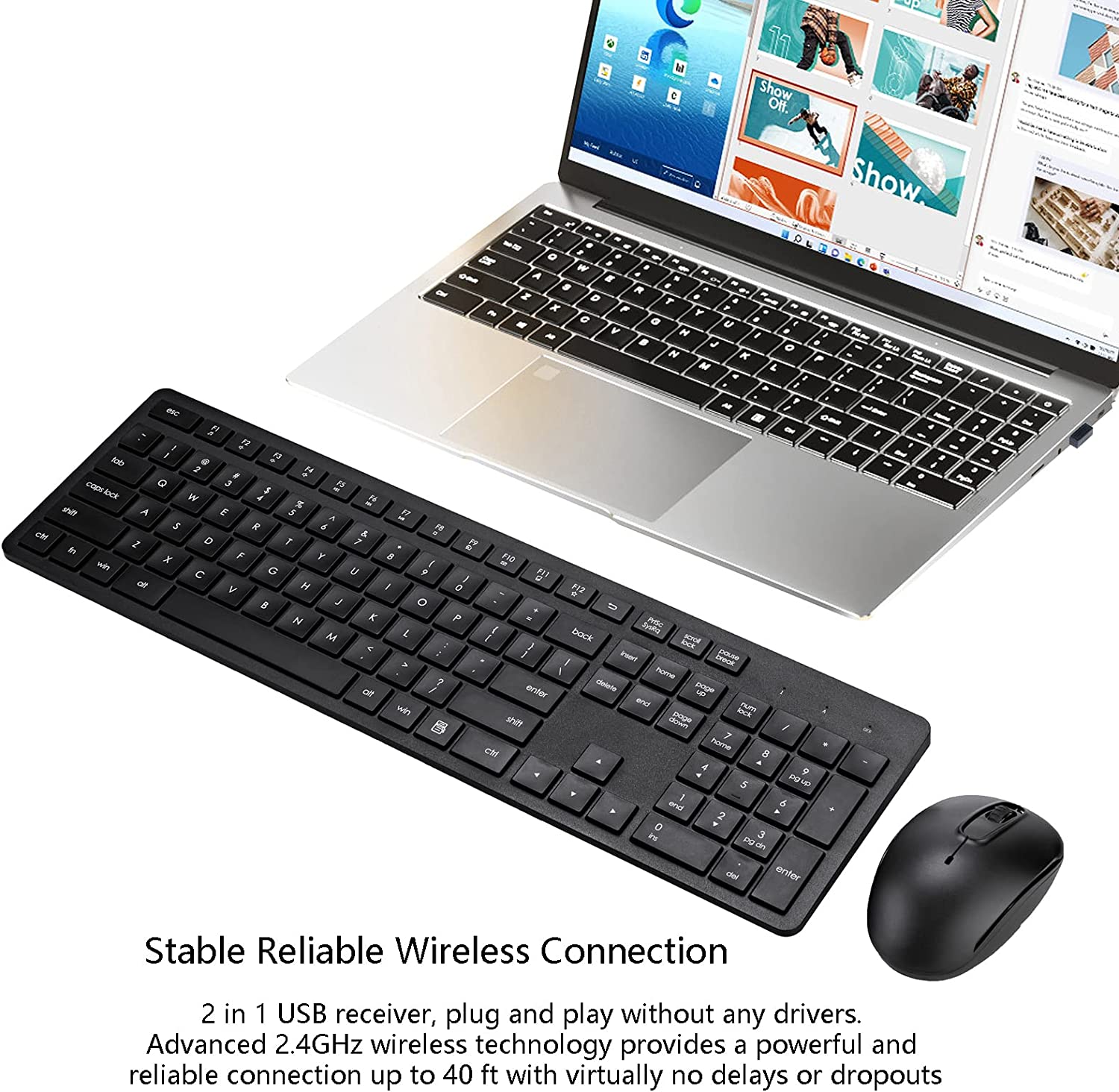- Wide Compatibility: Easy to use, simply plug the USB receiver into the USB port and start working. This wireless keyboard and mice combo compatible with Windows 11, 10, 8, 7, Vista, XP, Chrome OS, Linux and Mac OS. Works well with desktop, computer, PC, laptop, Chromebook, notebook and more. Perfect for office & home work, business travel. Enjoy your wireless freedom and keep your desk clean and tidy