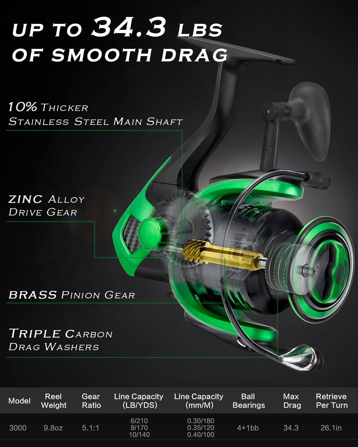 • 【Upgraded Carbon Fiber Drag Washers】Regarding the fishing reel, compared to most people using wool felt washers, we upgraded to 3 carbon washers, using one-way no-gap stainless steel bearings and all-metal rocker arms. The powerful drag system offers incredible stopping power up to 34.3 lbs/15.6kg without sacrificing smoothness. At the same time, we have thickened the throwing ring to enhance the stability of the fishing reel. Whether you are in freshwater or saltwater, you can use this reel.