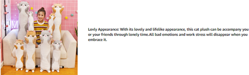 • CUDDLY STUFFED PLUSH: With its lovely and lifelike appearance, this cat plush can be accompany you or your friends through lonely time.All bad emotions and work stress will disappear when you embrace Plush Cat Doll