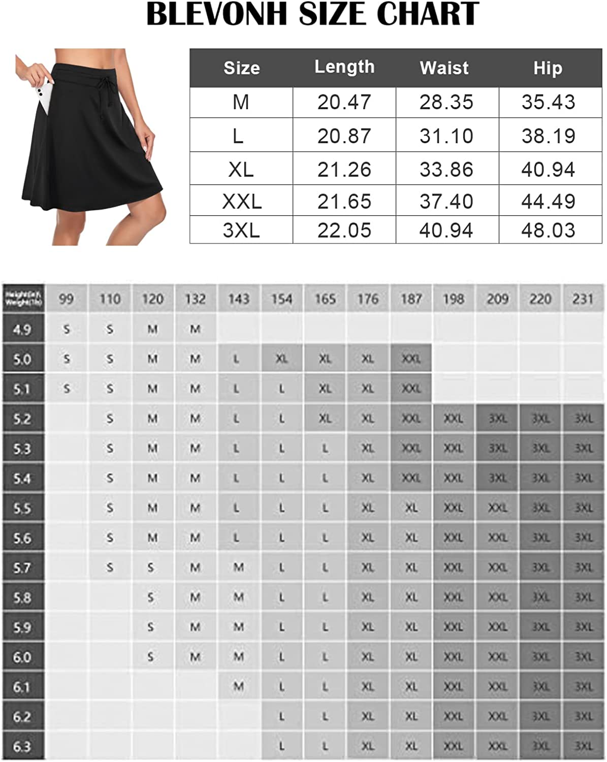 BLEVONH Women's Golf Skirt 20" Knee Length Skorts Skirts Drawstring Waist Tennis Skirts with Pockets