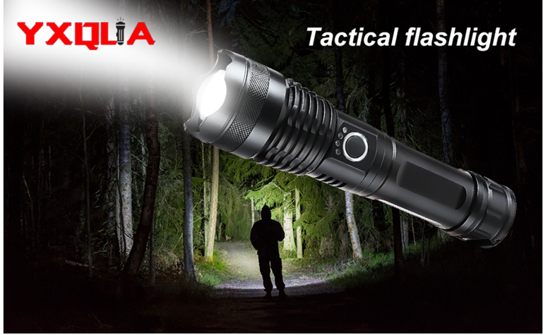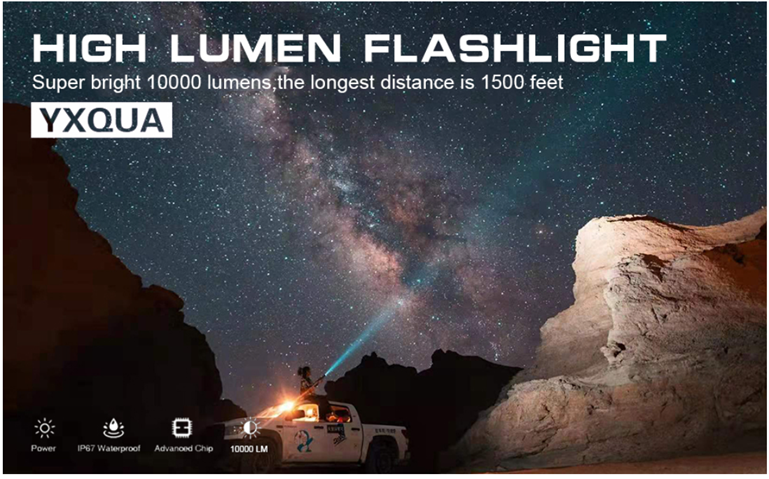 YXQUA 10000 Lumen Rechargeable Tactical Flashlight, XHP50 LED for Hiking Hunting Camping Emergency Outdoor Sport