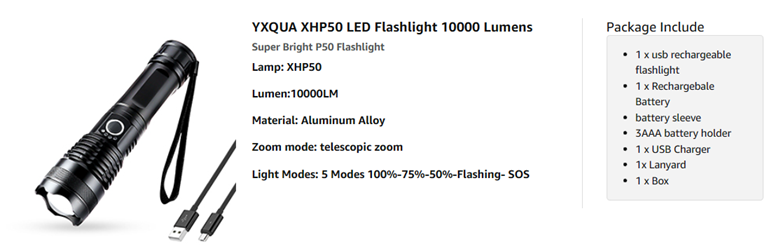 • [Quality service] Tactical flashlight, charging cable and 365 days worry-free warranty customer service. All products will be checked one by one before being sent to Amazon warehouse, please rest assured to shop. If you find bump damage product, please contact our email as soon as possible, we are responsible for replacing all quality related issues.